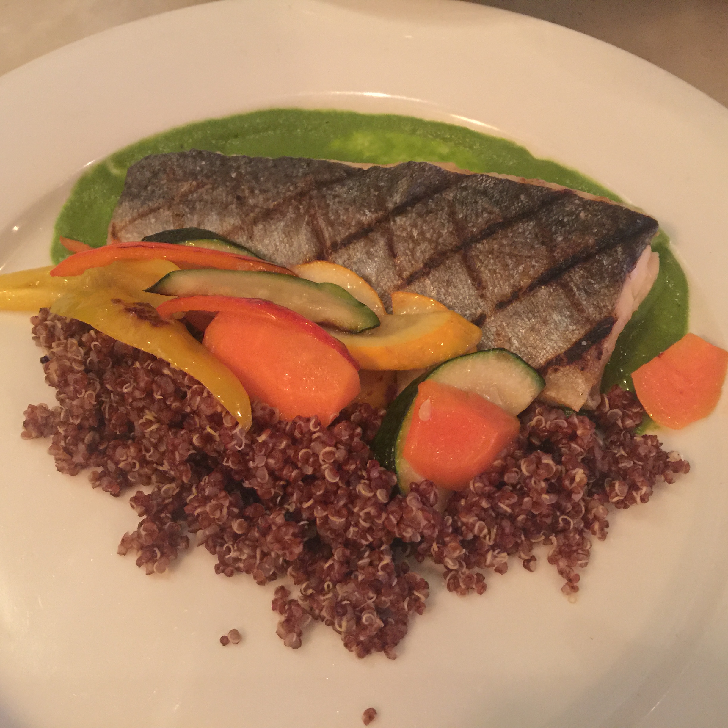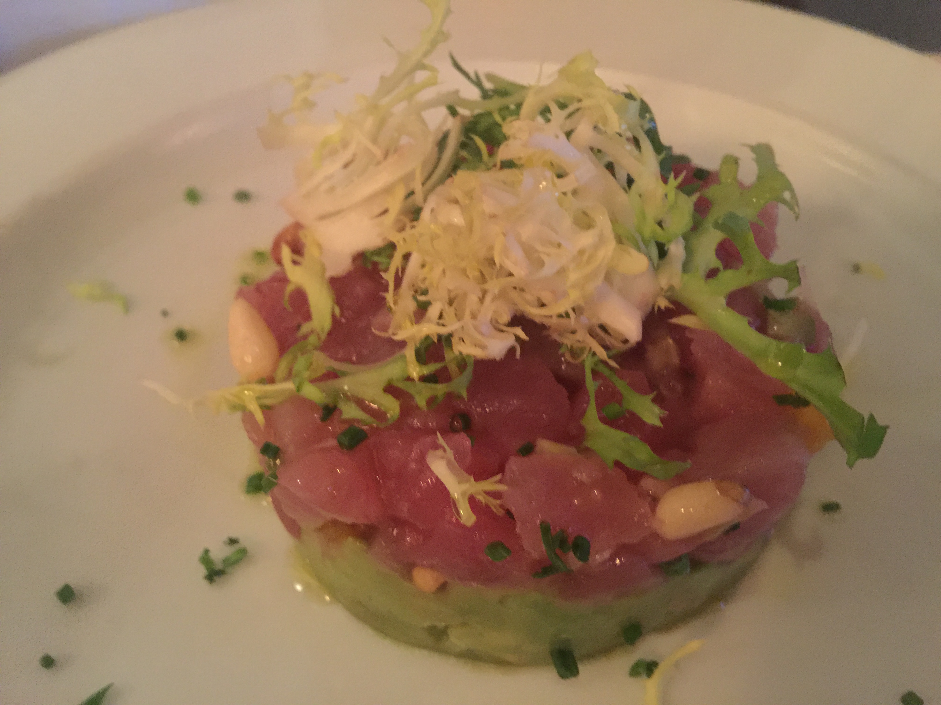 Dinner at Anisette started with one of their specials that night: Heirloom Tomato Salad with Ricotta Cheese and Parsley. The salad was one of my favorite parts of the meal. The tomatoes were farm fresh and had a great flavor that went well with the ricotta and parsley sauce.  We received an order of the Goat Cheese Tart and Tuna Tartare from the kitchen. I enjoyed the Tuna Tartare, which was very light, and delicately seasoned. The flavor of goat cheese is usually too strong for me, so I only tried a little bit of the tart, which had a rich and flaky crust.  Anisette also brought out a gnocchi dish which was beautifully plated with pretty white and pink radish. I wasn't a big fan of the herbs used to flavor the gnocchi and sauce, which tasted like dill and lavender. Someone who enjoys those flavors, may enjoy it more. I also ordered the Trout with Quinoa and vegetables.  The trout was cooked perfectly and was lightly flavored, which brought out the simple taste of the fish.  Lastly I had the shrimp risotto, the shrimp was delicious but the risotto tasted slightly under cooked and starchy.  I haven't had much risotto before so I'm not sure if that was how it's supposed to taste.  Anyhow, it was a pleasant meal and would recommend the restaurant to friends.
